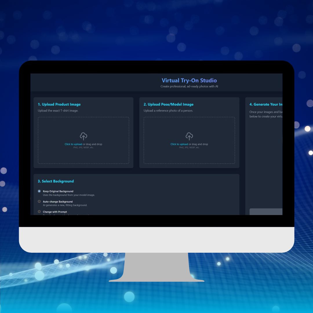 Get Started: Upload your t-shirt and model photos to instantly generate professional try-on visuals. Ideal for quick mockups, online store images, or creative campaigns.